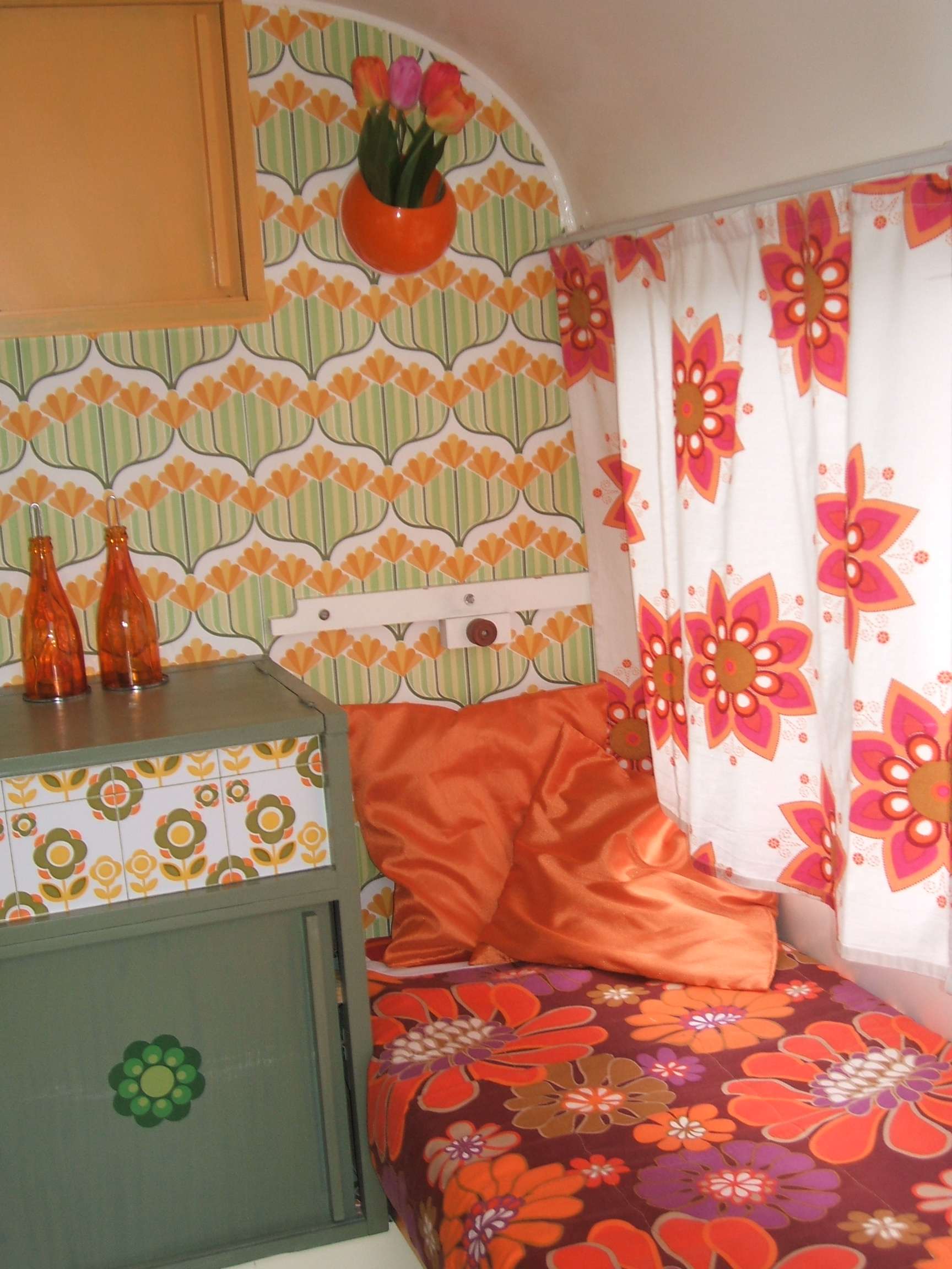 Jacomina en haar man hebben een knetter oud Engels caravannetje uit 1966 op de kop getikt. Ze mailde mij al eerder dat ze volop bezig waren met klussen en het resultaat mag er zeker zijn. Een vrolijke caravan in retro stijl! En vooral het behangetje vind ik helemaal te gek… Wat vind jij ervan?