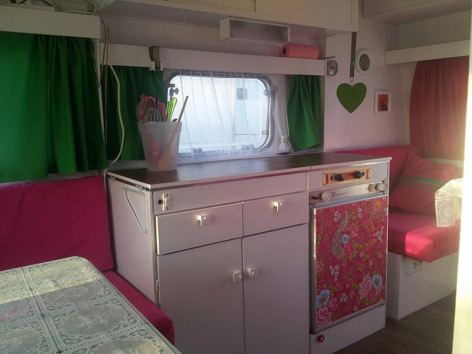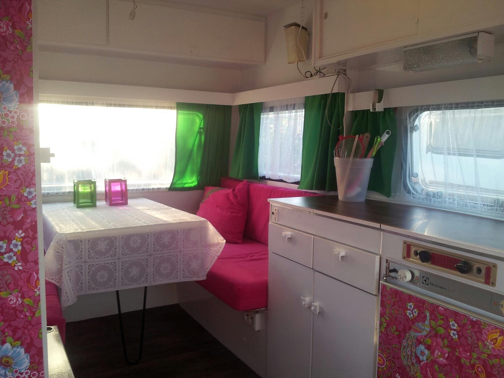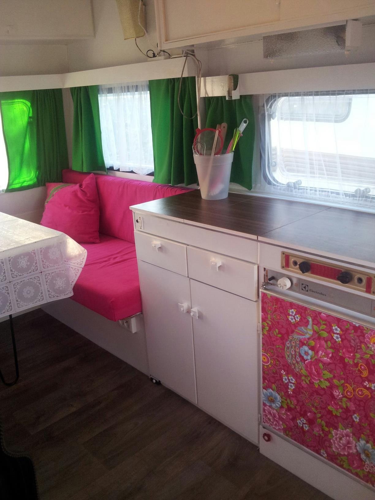 Annemarie Bakker mailde mij laatst het pimp-project van haar retro Knaus uit 1977: de zogenaamde Schwalbennest. Geïnspireerd door Maartje, maar toch heeft ze haar eigen draai eraan gegeven. Annemarie vond het een feestje om te doen.