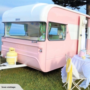Als je van vintage houdt, dan hou je ook van Mary-Lou. Zoet, girlie en rocks around the clock. Mary-Lou is een van de caravans die Beth van Love Vintage Caravans uit Nieuw Zeeland heeft opgeknapt.