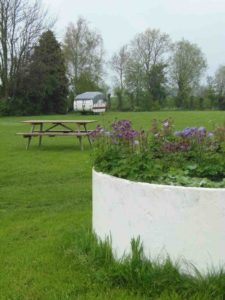 Wat we ook heel erg leuk vinden aan deze camping is dat je er nog een vuurkorf voor je caravan mag zetten! Bij de schuur staat een kruiwagen, korven en hout die je zo mag gebruiken. De voorgevel van de tent opgerold, stoelen, dekentjes, chips en een lekker glaasje erbij en stoken maar. De emmer water die we voor de zekerheid hadden klaargezet moesten we steeds legen door het regenwater…….