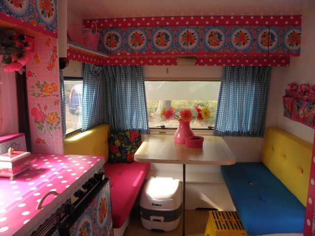 Conny van Elst en haar gezin huurden jarenlang een tent, maar wilden uiteindelijk toch iets voor zichzelf. Het werd een vouwwagen, maar na eindeloos gefoeter met het opzetten, besloten ze hem om te ruilen voor deze kekke Hobby caravan uit 1980. De buitenkant was al voorzien van wat vrolijkheid en ook aan de binnenkant was al wat gedaan, maar er moest meer gebeuren. Kitsch Kitchen was het toverwoord en na flink wat kluswerk, is dit het kekke eindresultaat. Vrolijk. Kleurrijk. Gezellig.