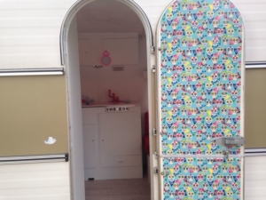 André en Iris van Manen stuurden mij hun fleurige Kip caravan toe. Er is volop geschuurd, geschilderd en gestyled. En potverjandriedubbeltjes, wat ziet het er gezellig uit! Extra bonuspunten voor dat enorm kekke plakfolietje op de deur.