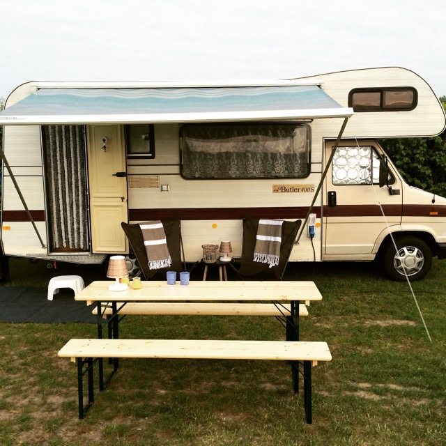 Soms krijg je mails en dan word ik al moe bij het lezen ervan… Sommigen van ons gaan zo ontzettend grondig te werk. Alles wordt keurig uit elkaar gehaald, geschuurd, geschilderd, teruggeplaatst. Of er wordt behangen op -in mijn ogen- onmogelijke plaatsen. Ik ben nogal van de ‘grote passen, snel klaar’ en heb bewondering voor mensen die het zo minutieus aanpakken. En soms, heel soms krijg ik mails zoals die van Rolf en Mireille. Die hun oude camper helemaal stripten. Zo grondig, dat de buitenwanden ondersteuning nodig hadden om overeind te blijven. Man, oh man. Wat een werk. En wat heb ik hier enorm veel respect voor.