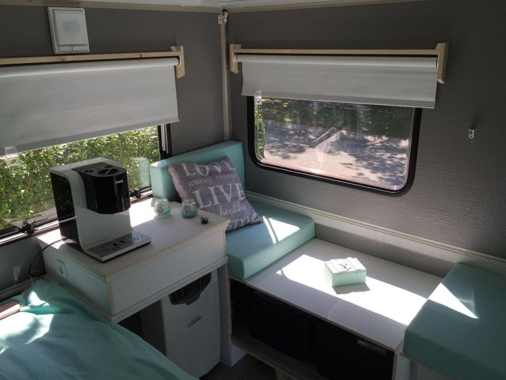 En zo is de hotelkamer op wielen dus ingeklapt…
