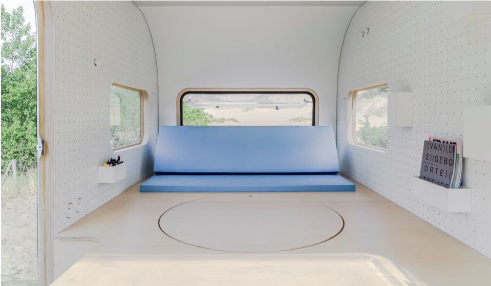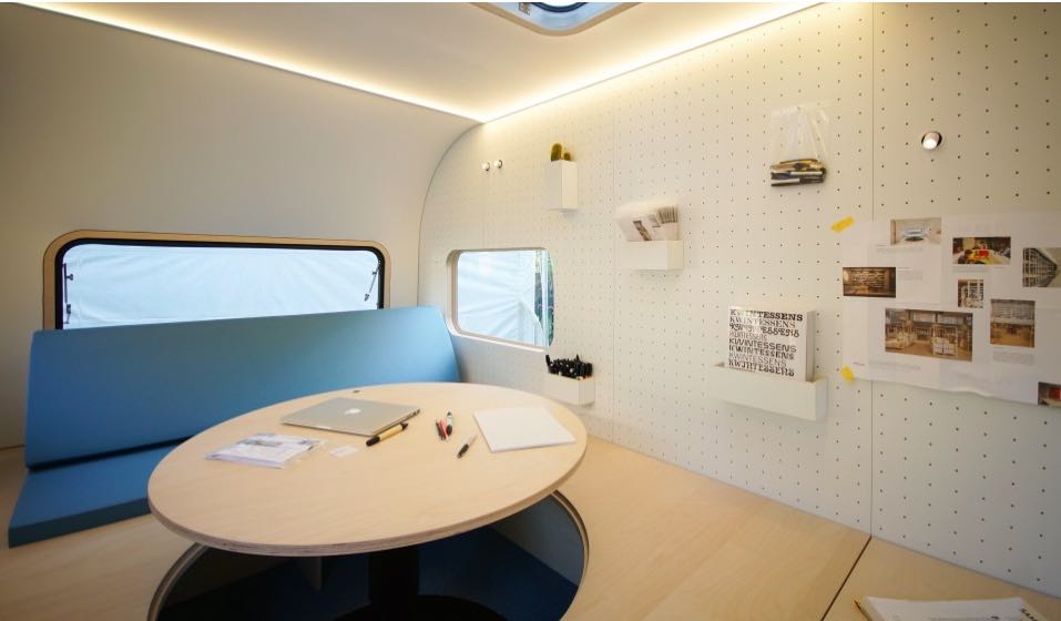 Voor mij blijft het voorlopig nog even bij dromen, maar de mannen van de Belgische ontwerpstudio FIVE AM ontwierpen een mobiele werkruimte met een flexibele inrichting. Een uitkomst voor de flexibele werkers onder ons. En mocht je na een ochtendje buffelen in de caravan inspiratieloos zijn geworden, dan leg je de matten neer en wacht je in lotus-houding tot de briljante ideeën weer tot je komen. Lovely!