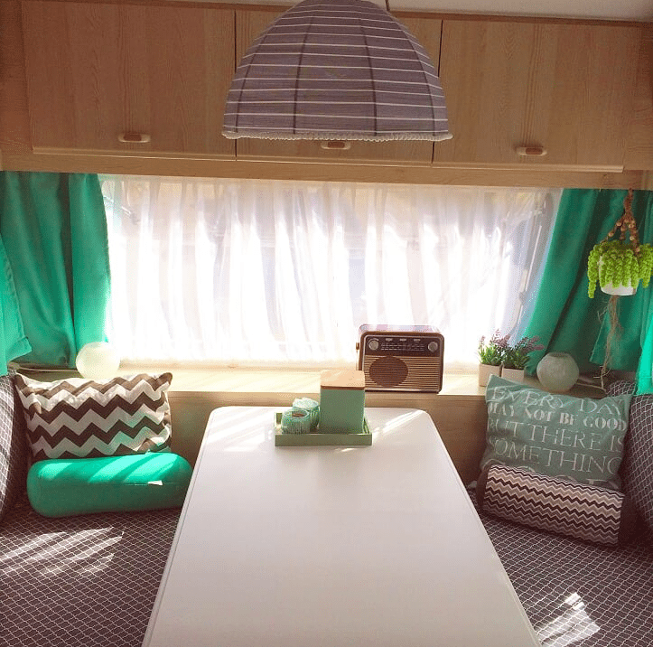 Het schilderen heeft ze beperkt tot alleen de achterwand en de tafels, want ze kan prima leven met de bestaande kleur van de kastjes. In het najaar volgt nog een nieuwe vloer en dan is Knoesje (want zo heet de caravan) klaar voor een tweede heerlijke zomer.