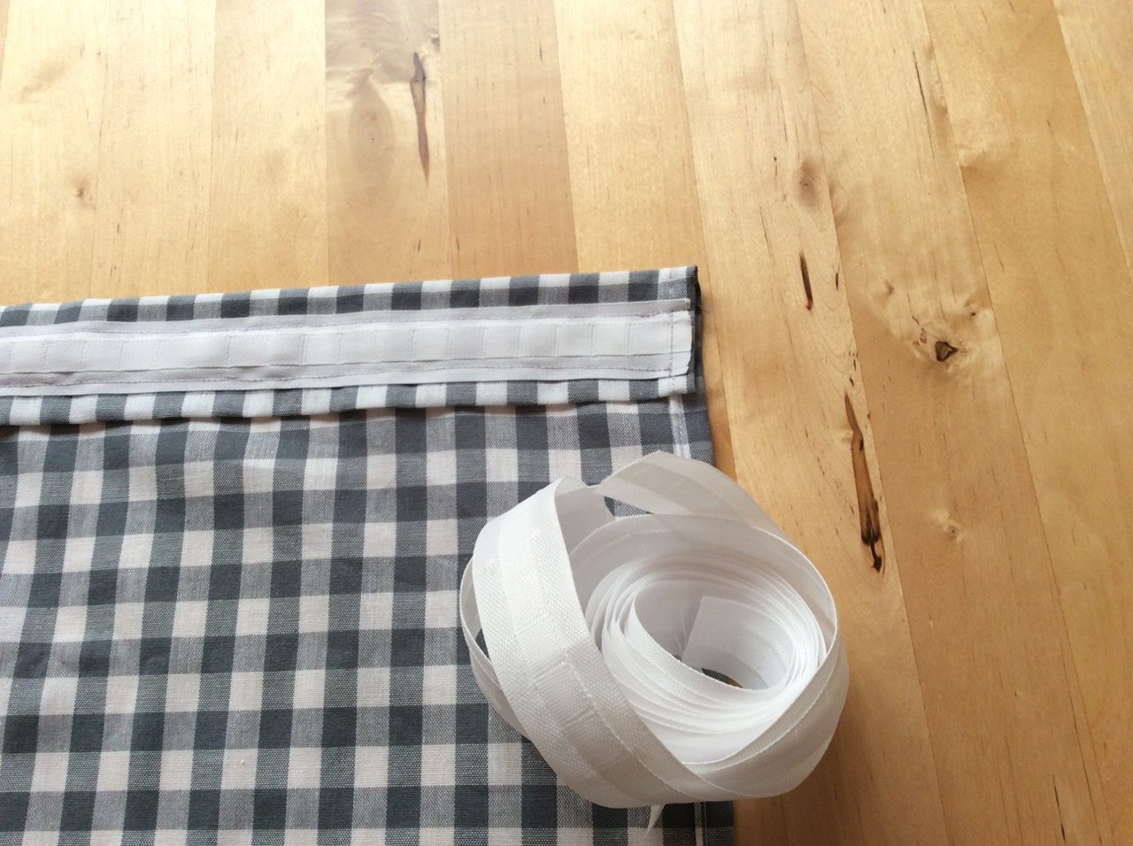 Het verschil is dat je nu een plooiband vastnaait aan het gordijn. Naai de plooiband niet strak tegen de bovenkant aan, anders krijg je geen mooi opstaand randje.