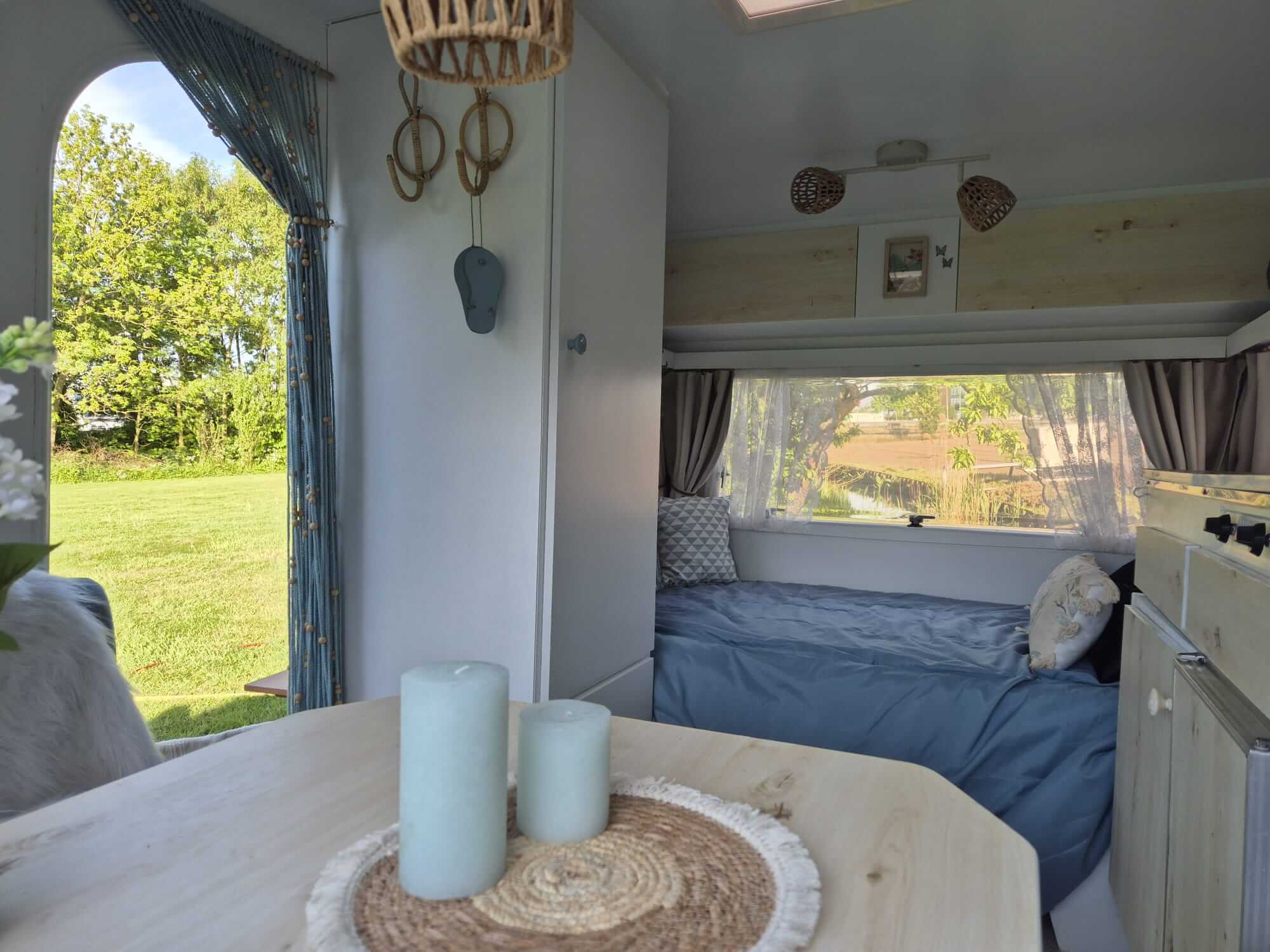 Het eindresultaat klopt tot in de details: zachte tinten, een knusse sfeer en precies zoals Carolien het in haar hoofd had. Mensen blijven staan, glimlachen, en zeggen dingen als: “Wat een schattig klein caravannetje.” Maarten nodigt ze dan vaak uit om even binnen te kijken.